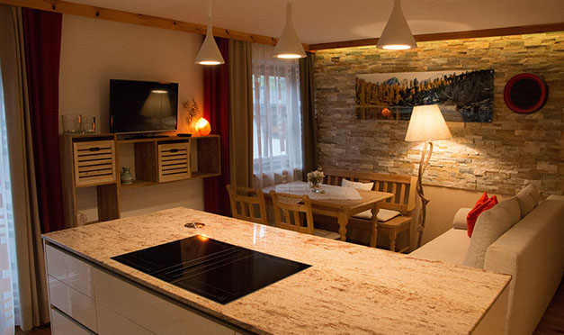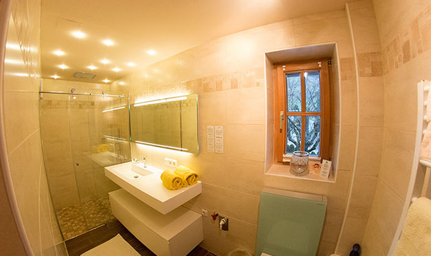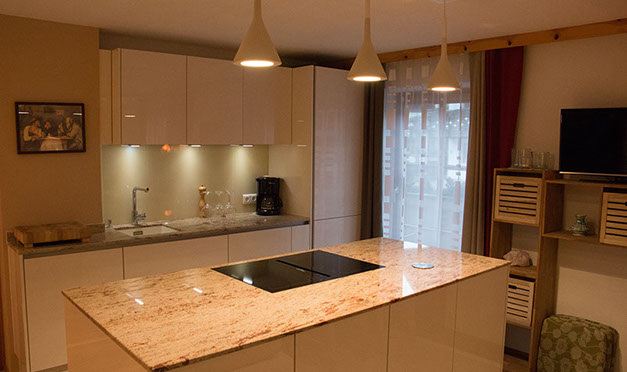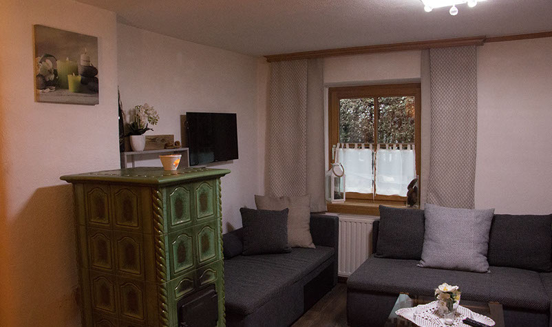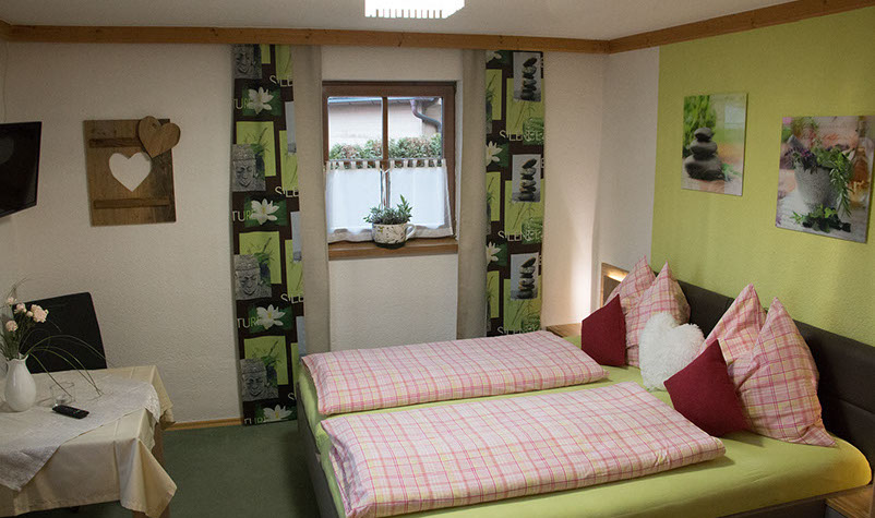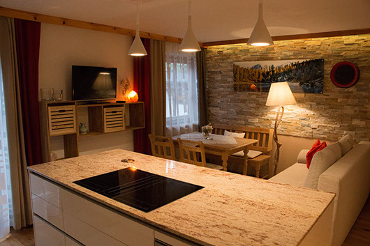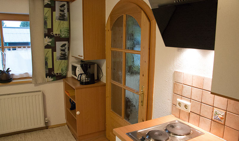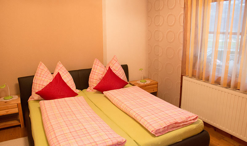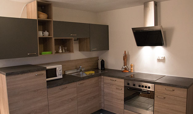 for 2 persons ~35 m², oriented south, small kitchen, dinette, double bed bedroom, couch, shower, WC, hairdryer, SAT-TV., parking spot